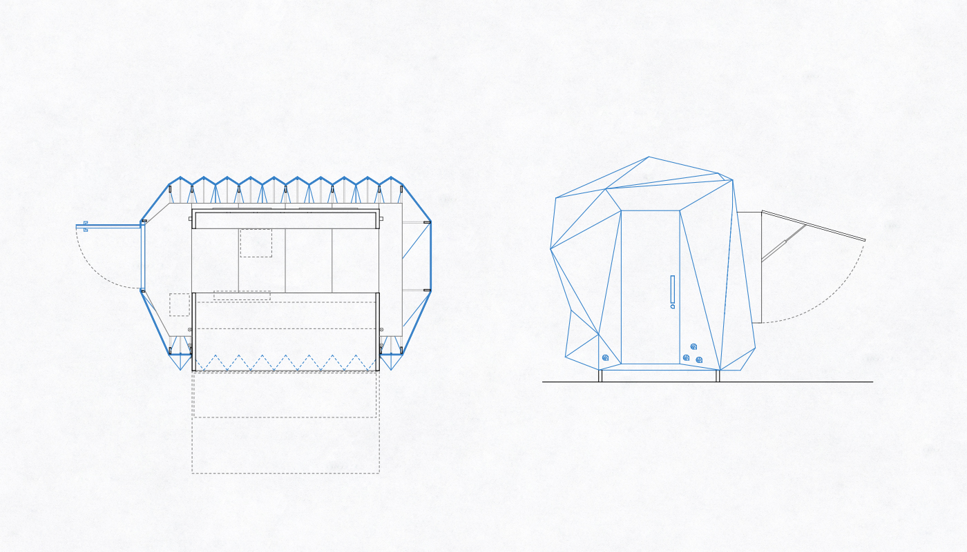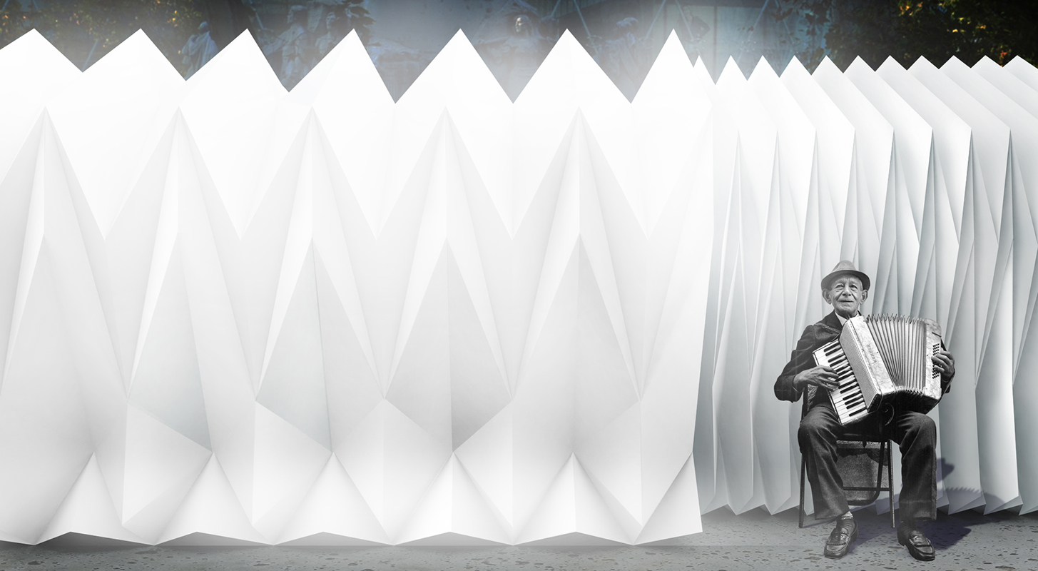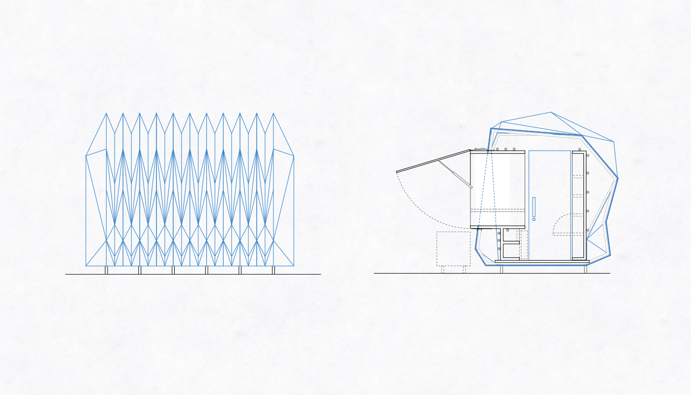 The accordion structure gives an alternative to the existing displeasing situation of the DIY wooden bungallows, providing a homogeneous base element that is able to change its size and shape between a minimum and a maximum value.