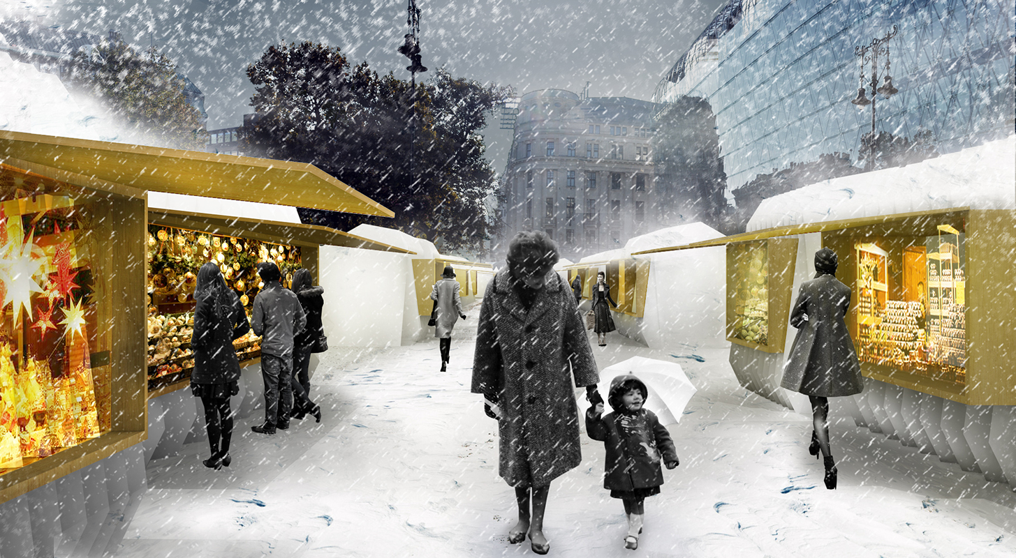 This proposal for the renewal of the pavilions of the Christmas Market in Budapest deals with light (the tool of highlighting) and combinatorics in an architectural scale in order to create an inviting system of urban objects that serves for various purposes.