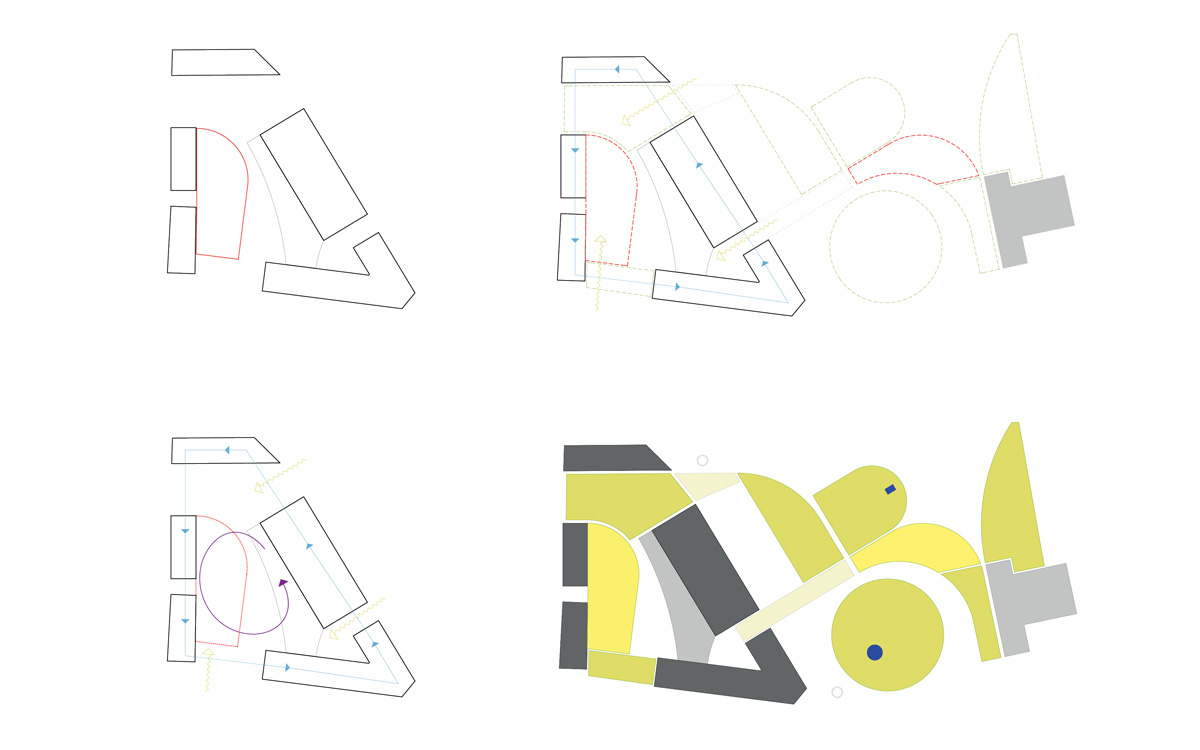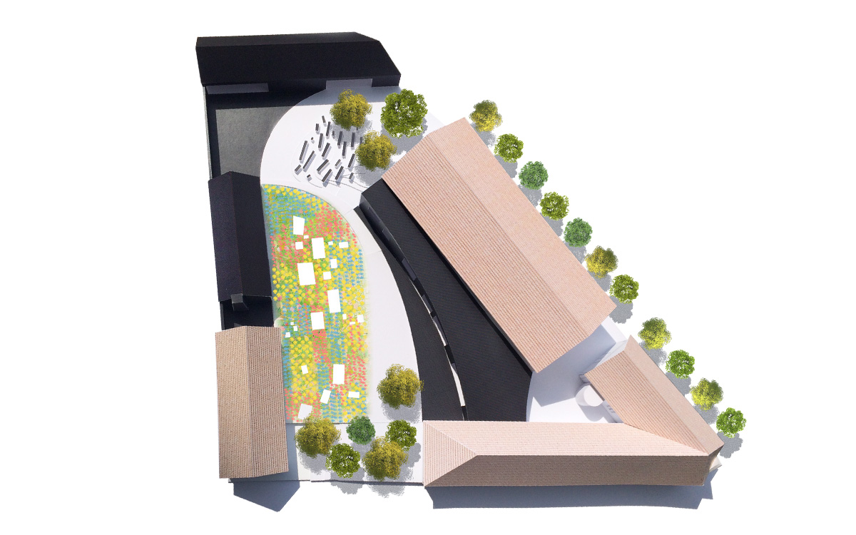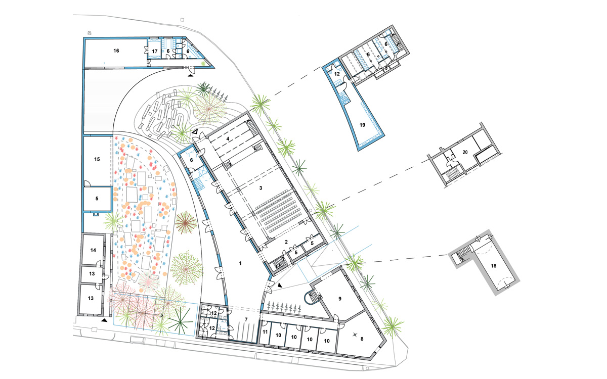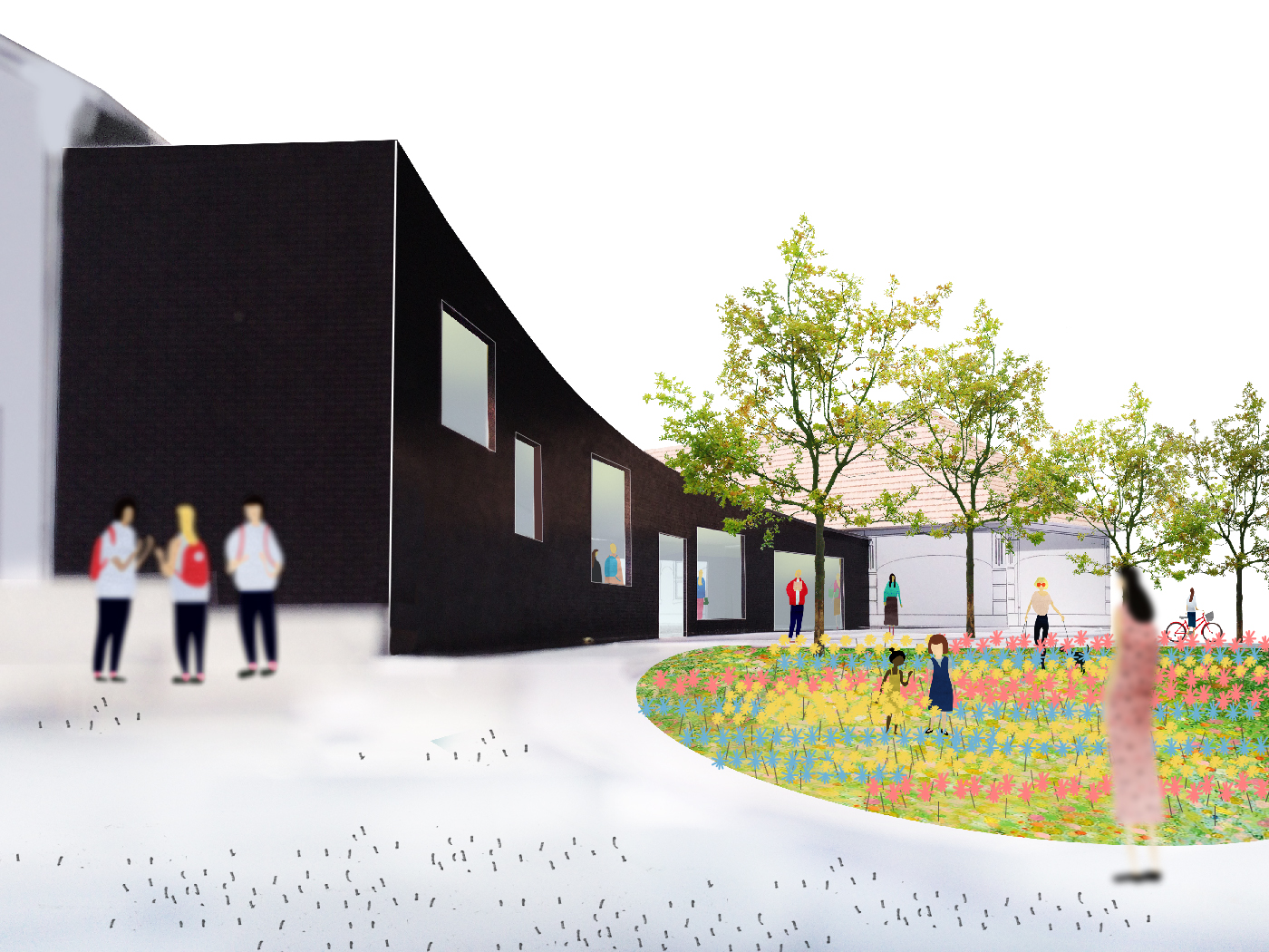 The existing set of buildings of the cultural centre are from three different time periods: a 100-year old family house, an 80-year old local pub and a 50-year old cinema. The need for renovation and extension also serves as an opportunity to make a more homogeneous architectural appearance of the complex.