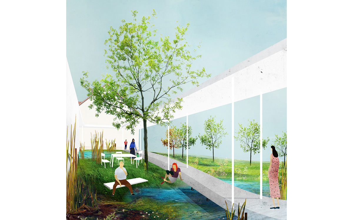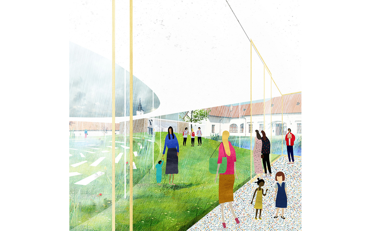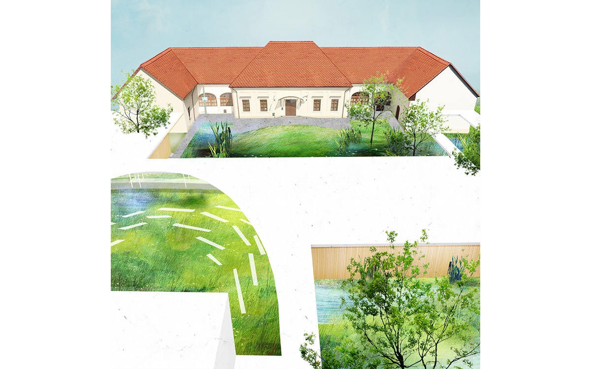 This projects works with 2 analogies: (1) the spatial organization of the rural residential sites and (2) the values of the landscape around Bugyi village: the flora of the marshland.