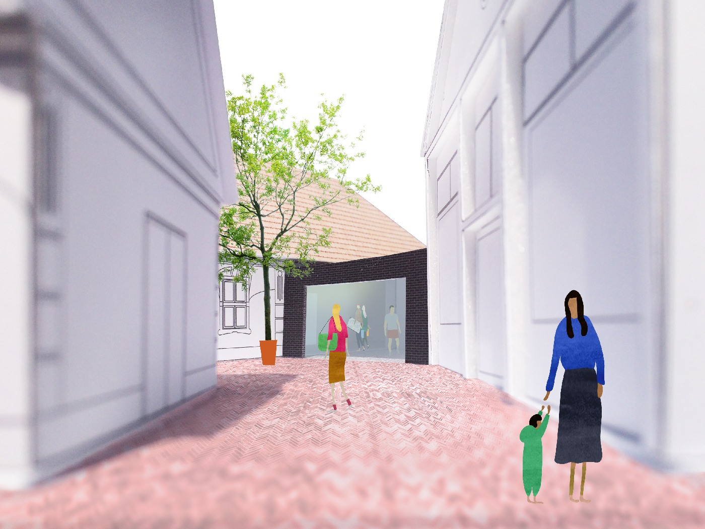 The existing set of buildings of the cultural centre are from three different time periods: a 100-year old family house, an 80-year old local pub and a 50-year old cinema. The need for renovation and extension also serves as an opportunity to make a more homogeneous architectural appearance of the complex.