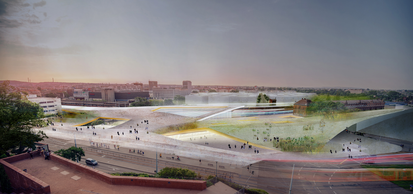 A key element in this process is nature that we consider not as an object but as a process. The organic development of this area from agricultural land to brownfields now will be reversed so that nature could first heal, then generate the future green character of Brno Centre.