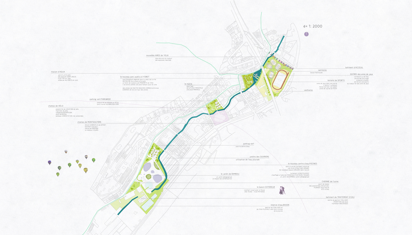 The province of Barentin city experiences serious ecological issues: the once emerging industrial area faces a demographic decline and the small but quite powerful L’Austreberthe river floods the whole valley four times a year that causes damages in the natural and built environment. Considering the rehabilitation of the centre of Barentin, the project must be handled on three different scales: regional, urban and architectural solutions have to be integrated into one whole comprehensive strategy.