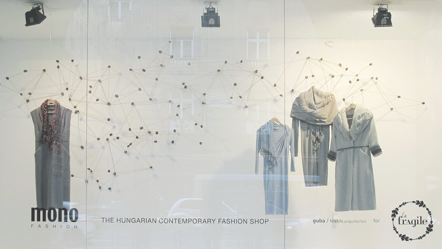 The chestnut molecule installation at Mono Fashion store window refers to La Fragile's experimental design methods as textile designers.