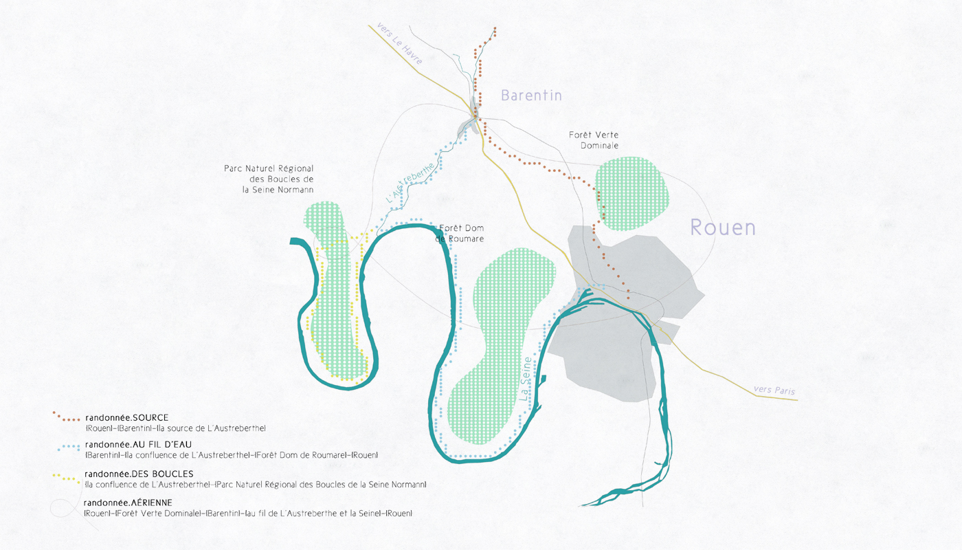 The province of Barentin city experiences serious ecological issues: the once emerging industrial area faces a demographic decline and the small but quite powerful L’Austreberthe river floods the whole valley four times a year that causes damages in the natural and built environment. Considering the rehabilitation of the centre of Barentin, the project must be handled on three different scales: regional, urban and architectural solutions have to be integrated into one whole comprehensive strategy.