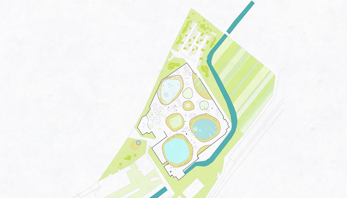 This project explores solutions on all three scales: the research shows the consequences of the changes in the regional agroforestry landscape and also proposes how to rebalance the fragmented biological ecosystem. The urban scale focuses on the new functional organization of the city centre that includes new urban green areas, spaces for recreation and a water and energy centre. The sport and swimming centre, that is the reconstruction of the 19th century brick factory, is presented on architectural scale.