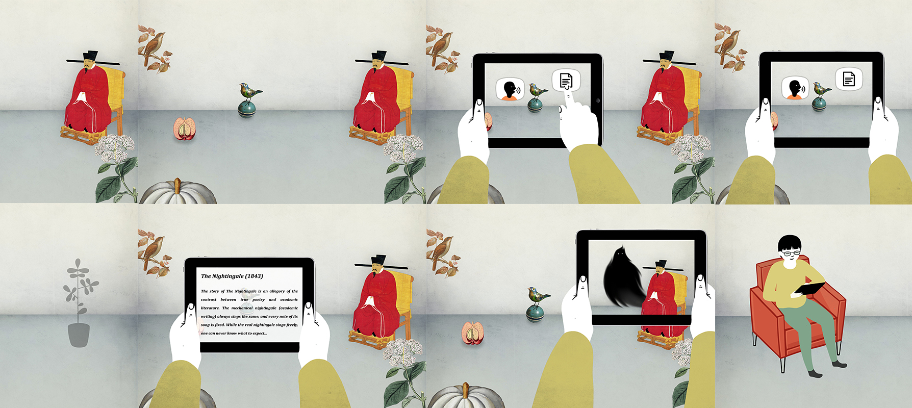 The concept of the exhibition brings the audio and visual experience of the fairy tale world into focus. On an additional virtual layer the visitors can get access to information with the use of a mobile application. During the museum visit the app mainly operates with Augmented Reality (AR).