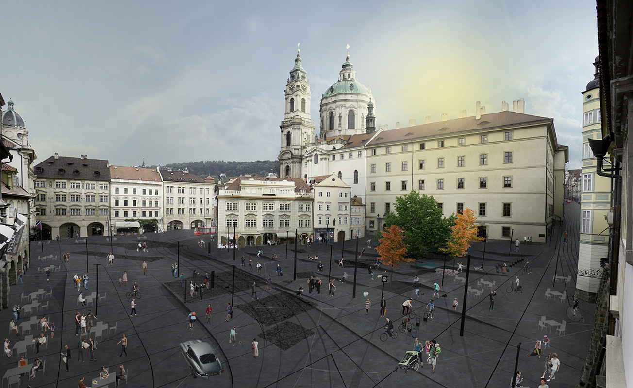 The reconstruction of the Lesser Town Square in the historical city centre of Prague brings up the questions of how the use of space changes in time and how collective memory appears in an urban context.