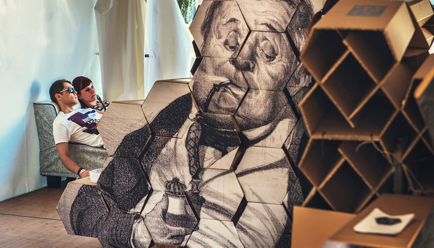 This environment friendly 3D puzzle game, which served as the main installation for the four biggest Hungarian art museums at the music festival Sziget 2015, was made of 330 reused paper chairs in order to reduce the amount of garbage that is produced in a major music festival.
